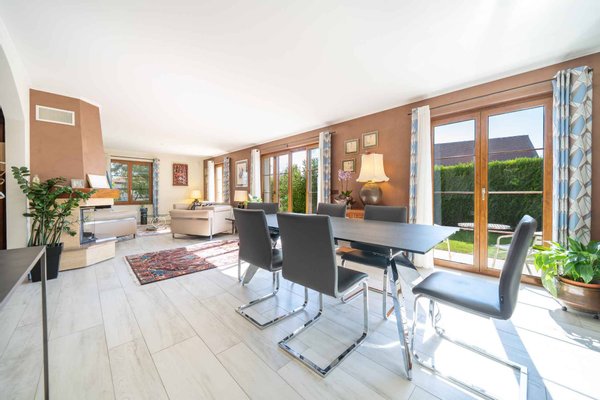 Dieses freistehende Haus mit 197 m² Wohnfläche aus edlen Materialien vereint dank seiner Geothermie- und Solaranlagen zeitgenössische Eleganz und hohe Energieeffizienz. Diese Immobilie verfügt außerdem über einen zentralen Staubsauger, der eine ruhige und kraftvolle Reinigung bietet.