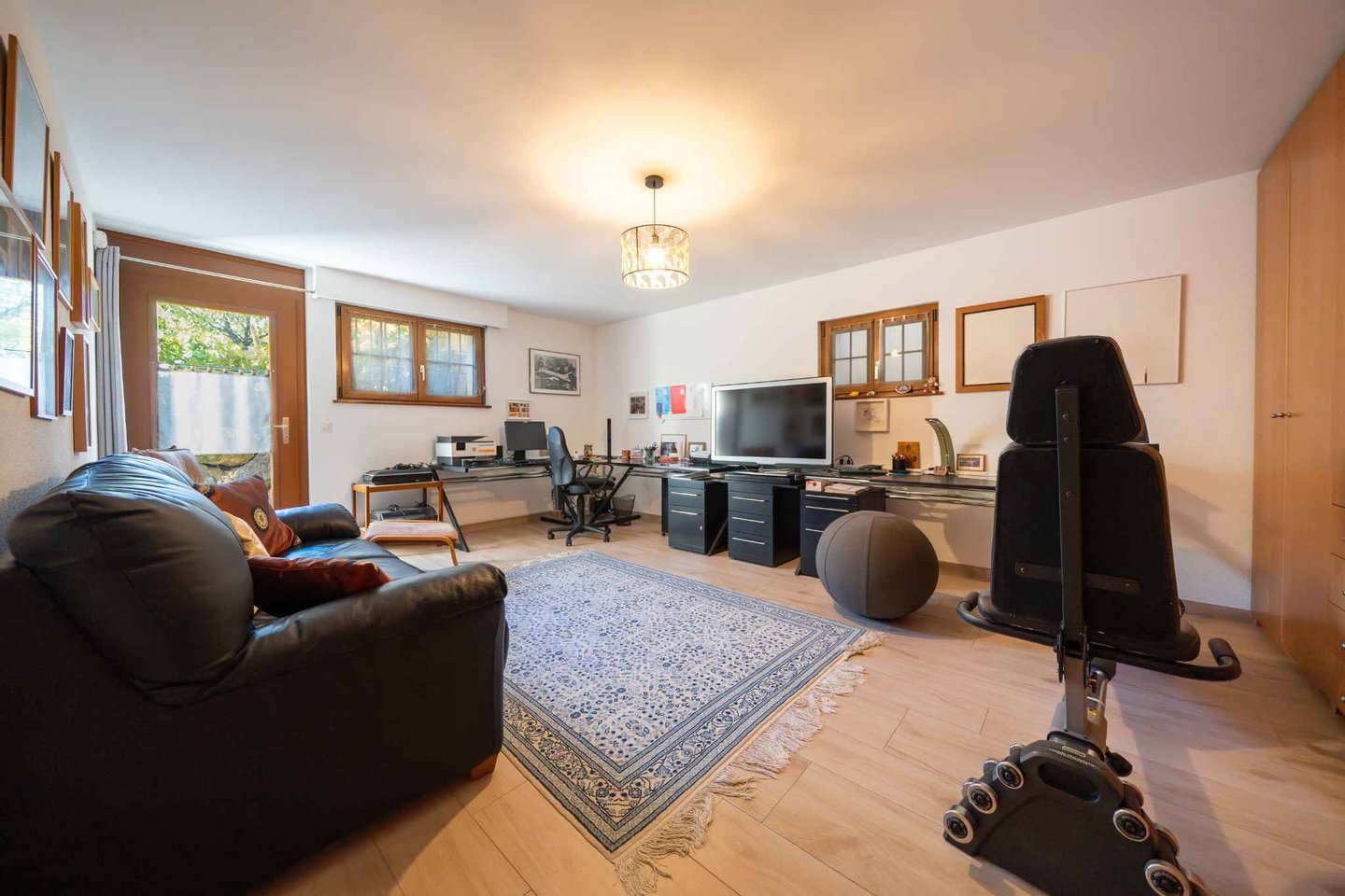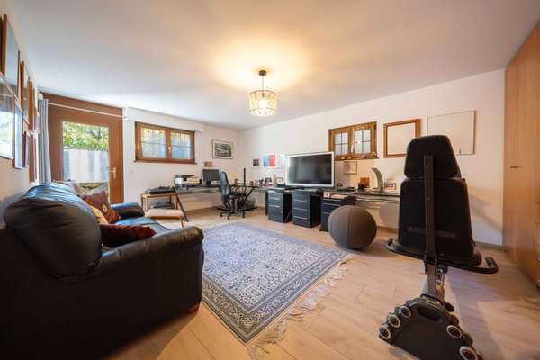 Draußen ist der sorgfältig gepflegte Baumgarten mit einem Jacuzzi geschmückt, der das ganze Jahr über zur Entspannung einlädt. Die nach Süden ausgerichtete Ausrichtung garantiert von morgens bis abends optimales Licht.