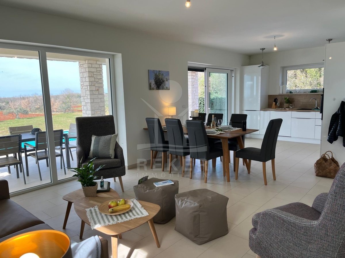 Dieses moderne, freistehende Haus bietet Ihnen eine ruhige Umgebung, nur 4,5 Kilometer vom Meer und vom Zentrum von Novigrad entfernt. Das Grundstück umfasst 652 m² und bietet Abstand zu Nachbarn. Zwei Stellplätze stehen direkt vor dem Haus bereit.