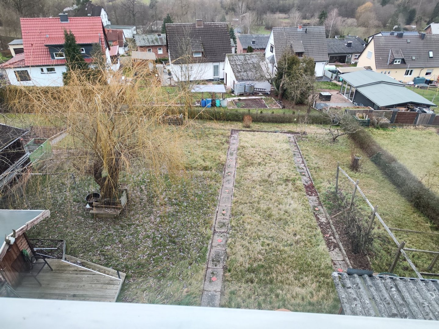 Eine überdachte Terrasse ermöglicht ein wetterunabhängiges Würstchen-Grillen, während auf dem Grundstück noch ein Gartenhaus genutzt werden kann.