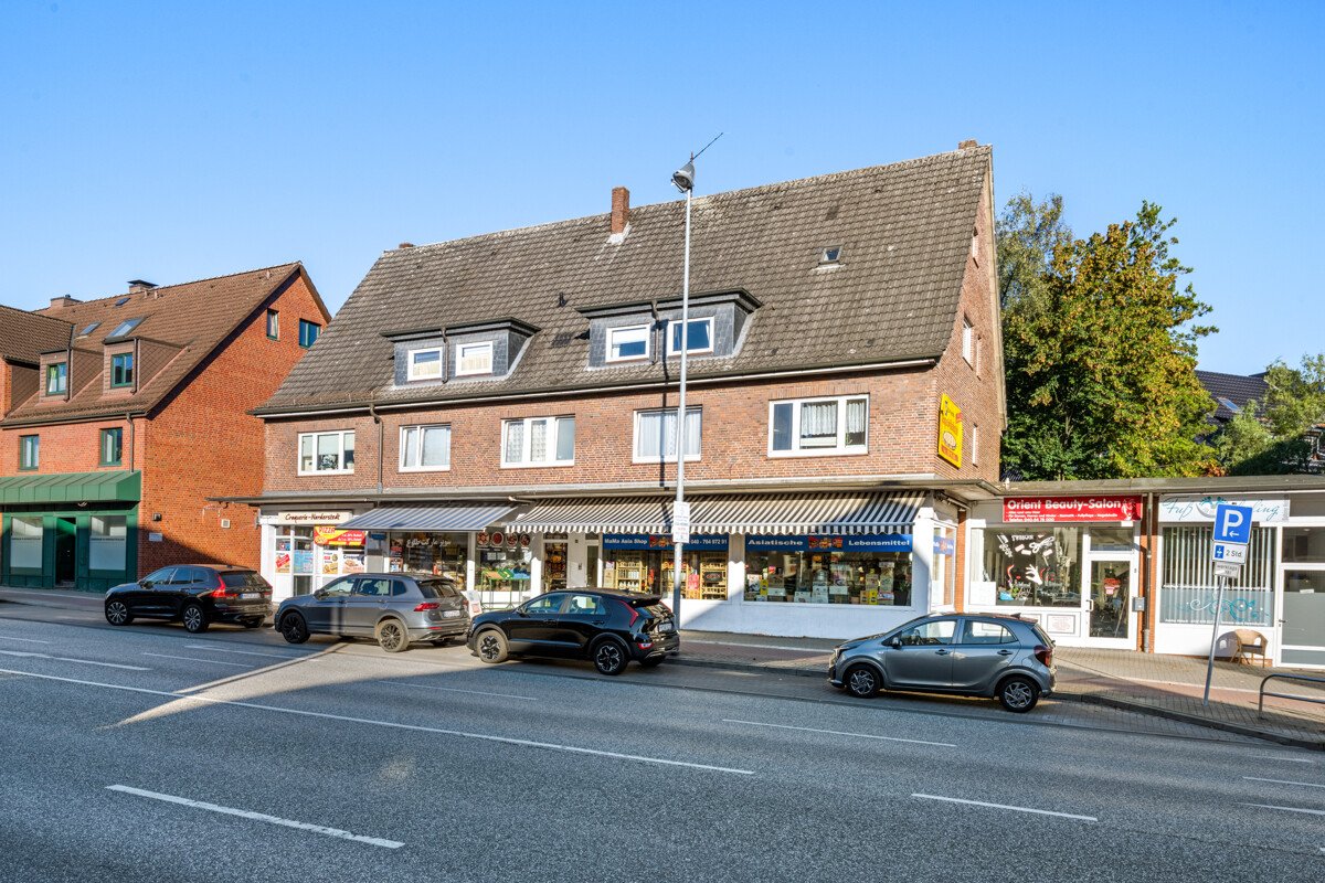 Zum Verkauf steht ein vollvermietetes Wohn- und Geschäftshaus mit insgesamt 9 Einheiten in urbaner Lage von Norderstedt, nur wenige Minuten von der Hamburger Stadtgrenze entfernt und nah gelegen am Schmuggelstieg, welcher Norderstedt und Hamburg verbindet. Die Immobilie befindet sich auf einem ca. 790 m² großen Grundstück und besteht aus 4 Gewerbeeinheiten im Erdgeschoss sowie 5 Wohneinheiten im Ober- und Dachgeschoss. Zusätzlich bietet der Spitzboden eine attraktive Ausbaureserve, wie es das angrenzende Nachbargebäude bereits vormacht.