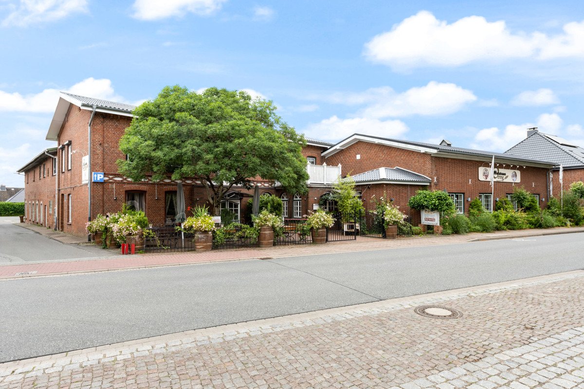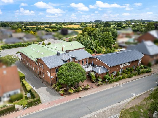 Zum Verkauf steht ein über Jahrzehnte im Familienbesitz befindliches, historisch gewachsenes Anwesen. Das Gebäudeensemble wird aktuell erfolgreich als vielseitige Eventlocation für Hochzeiten, Geburtstage und weitere festliche Anlässe genutzt und bietet darüber hinaus hervorragende Voraussetzungen für Gastronomie, Vermietung oder die Verwirklichung eines eigenen Hofprojekts mit Wohnen und Arbeiten unter einem Dach. Der heutige Saal wurde ursprünglich um ca. 1830 als Utspann errichtet und im Jahre 1912 erweitert. Es verkörpert gelebte Geschichte, sichtbar in vielen Details. Die klassische rote Klinkerfassade mit feinen Verzierungen, original erhaltene Pitch-Pine-Dielen, doppelflügelige Haustüren mit gebogenem Oberlicht, charmante Rund- und Sprossenfenster sowie beeindruckend hohe Decken unterstreichen die Beständigkeit des Gebäudes.