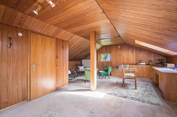 Der ausgebaute Spitzboden verfügt über eine Betondecke, Heizkörper, WC, Dachflächenfenster sowie ein Giebelfenster und ist damit wohntauglich ausgebaut. Ideal für eine flexible Nutzung als zusätzlicher Wohn-, Arbeits- oder Gästebereich.