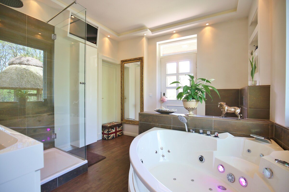 Sie können sich hier in dem mit ca. 209 m² Wohnfläche nach DIN und ca. 98 m² Nutzfläche repräsentativem Haus frei und ohne jede Einschränkung bewegen. Beispielsweise können Sie sich vom 2. Hauseingang bis zum Poolbereich bewegen, ohne jede Einsehbarkeit durch Nachbarn. Diverse Terrassen, Balkon oder Gartenhäuser sowie Garagen sind diesem aus Jahre 1897 entstandene Anwesen zugehörig. Das Reet wurde in 1984 und 2010 neu überdeckt, so dass es nun über hervorragende Isolierwerte verfügt.