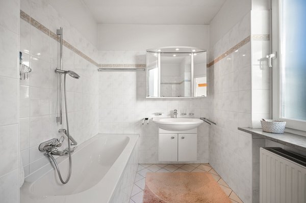 Ein weiterer Vorteil ist der zusätzliche Schlafraum im Erdgeschoss, der vielfältige Nutzungsmöglichkeiten bietet – ideal als Schlafzimmer, Gästezimmer oder barrierearmes Wohnen. Ergänzt wird das Erdgeschoss durch ein Gäste-WC sowie ein praktisches Wannenbad, das funktionalen Wohnkomfort gewährleistet.