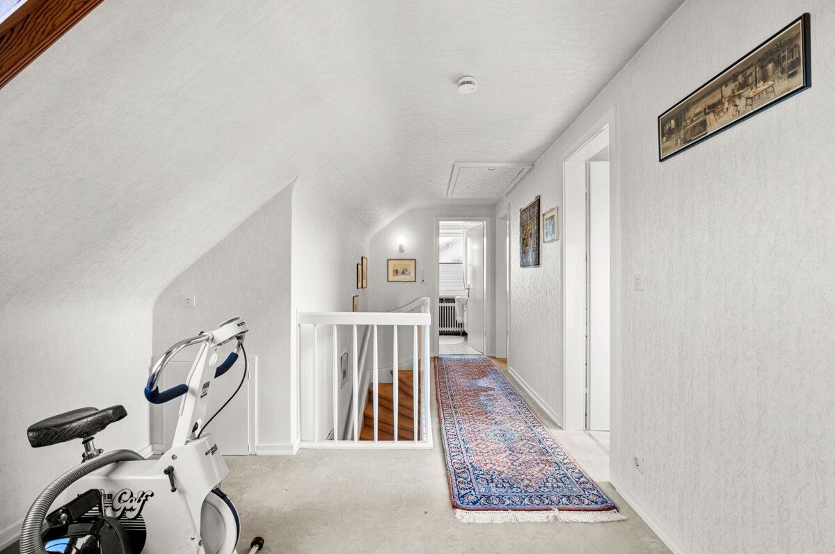 Im Obergeschoss stehen drei gut geschnittene Schlafzimmer zur Verfügung, ergänzt durch ein Tageslicht-Duschbad sowie eine offene Galerie, die sich hervorragend als Arbeitsplatz, Leseecke oder Spielbereich eignet. Der vorhandene Teilkeller bietet nützliche Abstell- und Funktionsflächen.