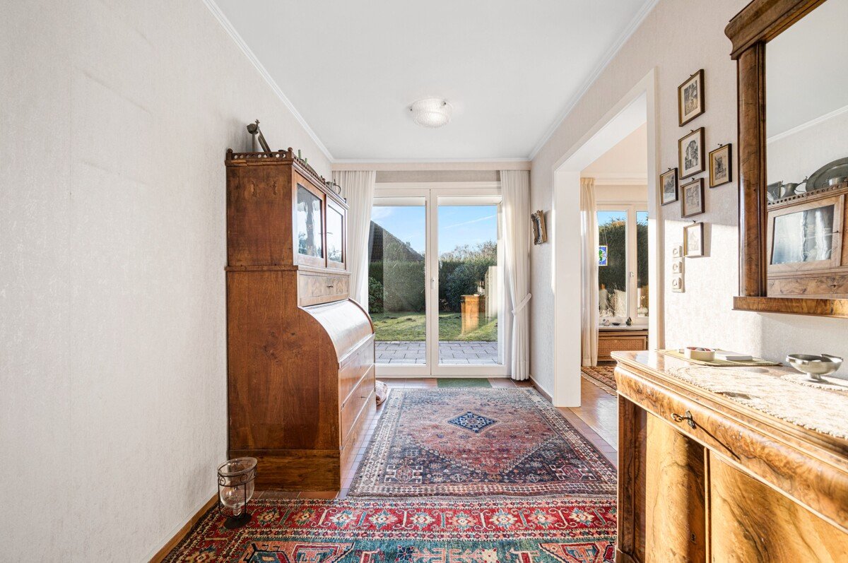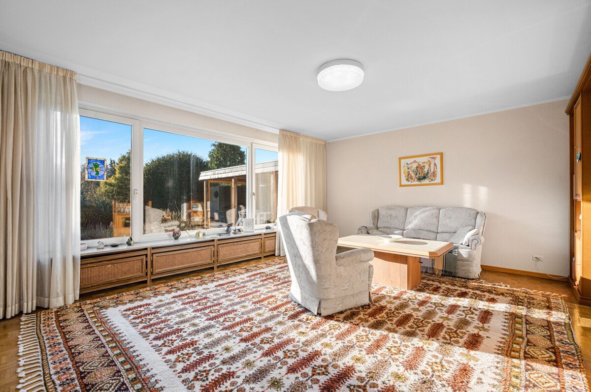 Dieses charmante Einfamilienhaus aus dem Jahr 1969 befindet sich in einer äußerst begehrten Wohnlage: einer ruhigen Sackgasse direkt am Feldrand. Auf einem großzügigen Grundstück von ca. 830 m² bietet das Objekt ideale Voraussetzungen für alle, die naturnah wohnen und gleichzeitig eine gute Infrastruktur schätzen. Bereits beim Betreten wird deutlich, wie durchdacht der Grundriss gestaltet wurde. Das große, helle Wohnzimmer mit hochwertigem Stäbchenparkett bildet den gemütlichen Mittelpunkt des Hauses und öffnet sich harmonisch zum Esszimmer sowie zur angrenzenden Küche, die über einen separaten Zugang verfügt . Die Raumaufteilung ermöglicht zudem problemlos ein modernes, offenes Wohnkonzept. Zusätzlichen Raum bietet der großzügige Flur mit Zugang zum Garten.