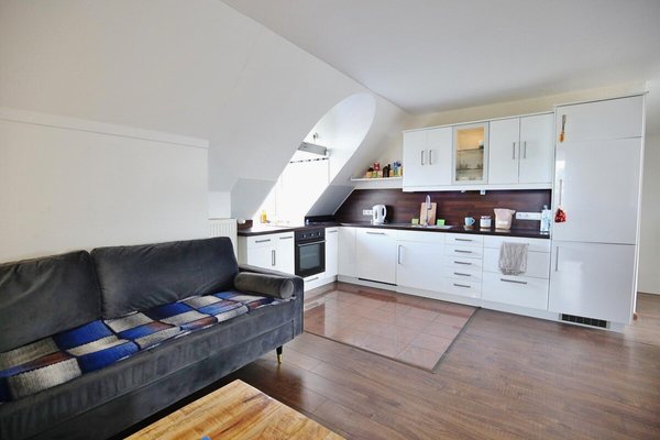 Über eine schöne Holztreppe gelangen Sie in das Dachstudio (ca. 40 m²). Hier befindet sich das frühere Schlafzimmer und heutige Wohnzimmer mit einer modernen offenen Küche. Von hier gelangen Sie auf die Loggia, die an warmen Tagen als Wohn- und Esszimmererweiterung dient. Das große Vollbad ist lichtdurchflutet; von hier können Sie auf einen kleinen Dach-Balkon treten und über die Norderstedter Dächer schauen.
