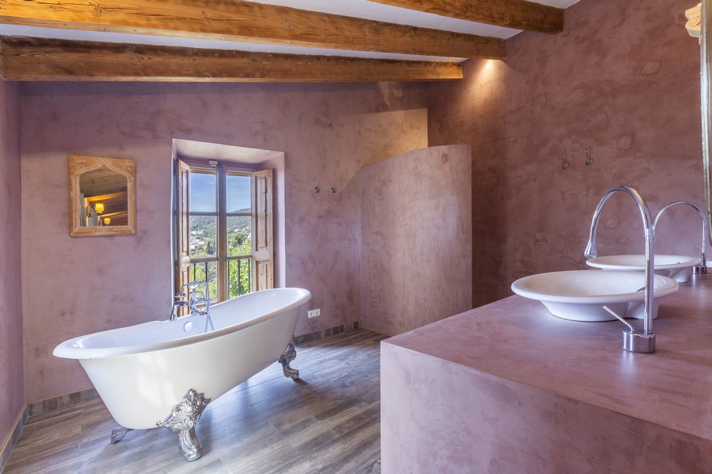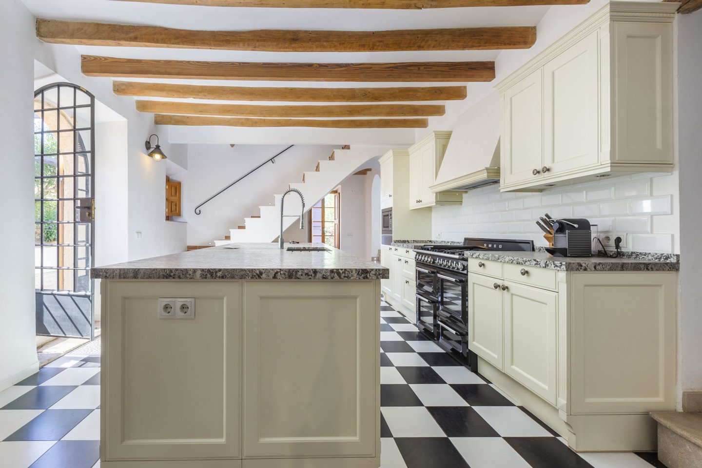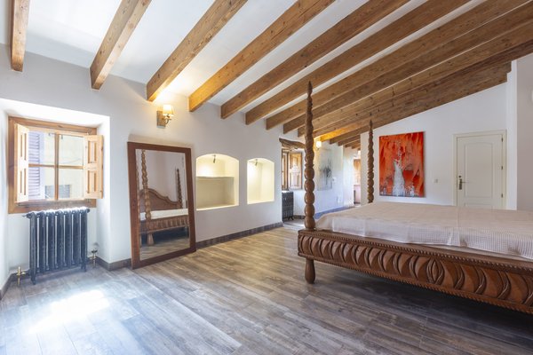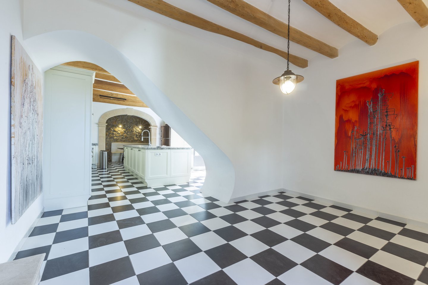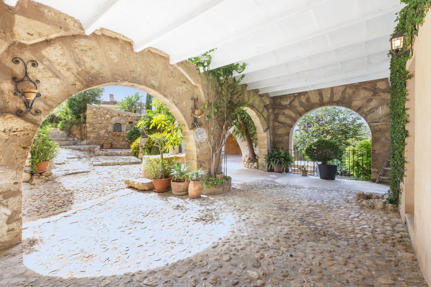 Diese im Kern etwa 350 Jahre alte außergewöhnliche Villa wurde behutsam und mit viel Liebe zum Detail und unter Erhaltung vieler traditioneller Details wie den Holzbalken und Holzeinbauten saniert. Das Haupthaus bietet ein großzügiges Wohnzimmer mit Kamin, ein Esszimmer mit Zugang zu einem weiteren gemütlichen TV-Zimmer und zwei Gäste-WCs. Wenige Stufen versetzt befindet sich die vollausgestatte Küche mit einem Hauswirtschaftsraum und einem weiteren Lounge- sowie Essbereich mit Kamin. Auf der unteren Ebene gelangt man zu einem Gästezimmer mit eigenem Bad und zusätzlichem Zugang von außen. Im ersten Obergeschoss liegt das großzügige Hauptschlafzimmer mit Bad en Suite sowie wenige Stufen versetzt ein weiteres Schlafzimmer mit Badezimmer. Der Außenbereich des südwestorientierten 2.000 m² großen Grundstückes bietet einen einladenden Patio, einen schön angelegten Garten sowie einen großen Swimmingpool mit Sonnenterrasse und Barbecue-Bereich. Von hier aus kommt zum separat zugänglichen Gästestudio mit Küche, Schlafzimmer und Bad sowie zu einem weiteren Schlafzimmer mit Bad. An diesem besonderen Ort genießt man absolute Privatsphäre und einen wunderschönen Blick auf die Berge und das Meer und ist trotzdem nur 5 Autominuten von Palmas Zentrum entfernt. Die prädestinierte Lage des Hauses zwischen Bonanova und Genova bietet des Weiteren im nahen Umfeld ein vielfältiges Angebot an Restaurants. Auf dem Grundstück stehen außerdem mehrere PKW-Stellplätze zur Verfügung.