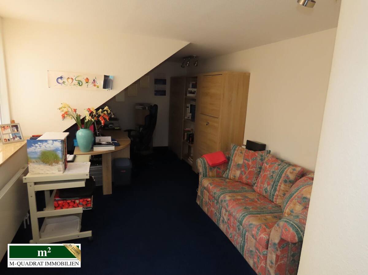 Im I.OG liegen das zum Garten gelegene Schlafzimmer, das große Bad, sowie eine Galerie. Im DG finden sich zwei weitere Schlafzimmer, ein weiteres Bad, als auch zwei zusätzliche Arbeitsräume. Daran grenzt ein großer Dachbalkon an.