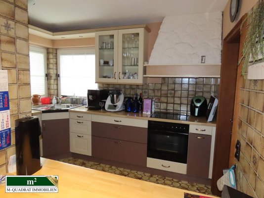 An den Eingangs- schließt sich der großzügig gestaltete Wohnbereich mit Küche, im halbrunden Erker gelegen Essensecke, Kamin- und Wohnzimmer an. Durch eine Öffnung in das I.OG und den dadurch entstehenden Luftraum ist dieses sehr hell und luftig. Im gesamten EG finden sich große Bodenfliesen aus rustikaler Keramik, handgeformte flämische Keramikfliesen und rustikale sandgestrahlte Eichenbalken, z.T. mit schmiedeeisernen Elementen verziert.