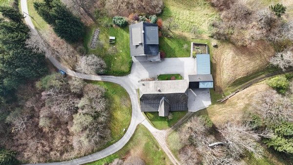Ein großer Vorzug ist die Ruhelage in Kombination mit einer unverbaubaren Panoramafernsicht die sich, insbesondere von der überdachten Terrasse im Erdgeschoss oder der Balkonanlage im Obergeschoss, hervorragend genießen lässt. Gleichzeitig ist das Gelände um die Hofstelle herum zum Großteil nahezu ebenerdig bzw. in leichter Hanglage und liegt lediglich ca. zehn Autominuten von der umfassenden Infrastruktur der Bezirksstadt Spittal an der Drau entfernt. Die eigene großzügige Zufahrt verfügt über hinreichend Stellplätze. Ein Carport für ca. drei PKW befindet sich zwischen dem Wohn-/ und Heizgebäude, in dem sich die Hauseigene Hackschnitzelheizanlage befindet.