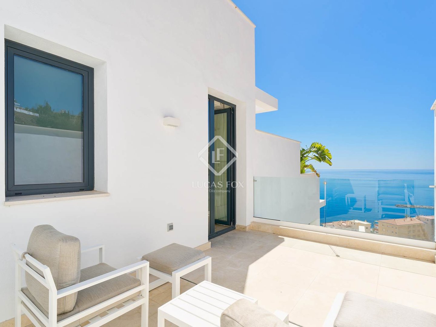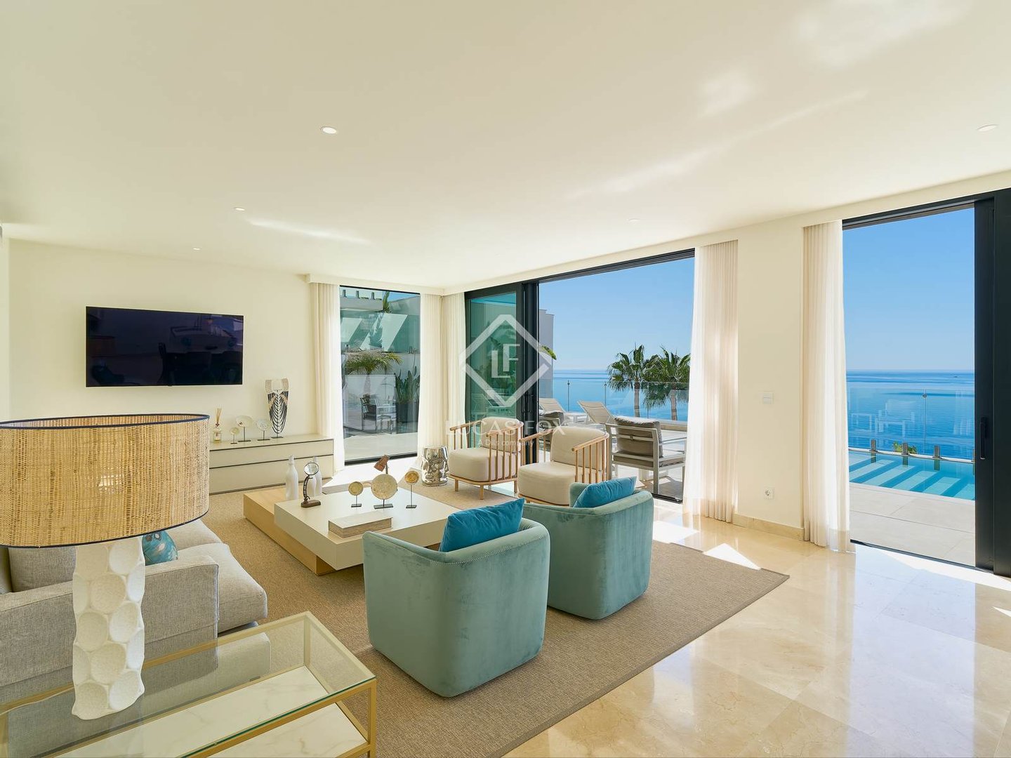 Diese Villa im modernen Stil wurde 2025 fertiggestellt und verfügt über 570 m² bebaute Fläche, 227 m² Grundstück, 265 m² Terrassen und einen 75 m² großen privaten Pool. Die beeindruckenden raumhohen Fenster lassen viel Tageslicht herein und bieten einen 180-Grad-Panoramablick auf das Meer.