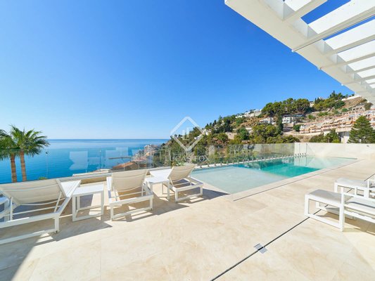 Lucas Fox präsentiert exklusiv die Villa Horizon, eine luxuriöse High-End-Villa mit zeitgenössischem Design und Blick auf das Mittelmeer. Es befindet sich in Almuñécar an der privilegierten Costa Tropical in Granada, einem einzigartigen Ort am Meer mit mehr als 300 Sonnentagen im Jahr.