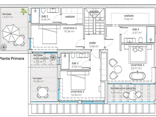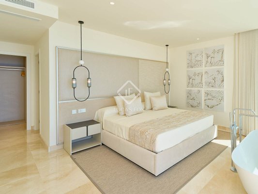 Zu den Ausstattungsmerkmalen gehören eine zentrale Klimaanlage und ein Airzone-System in den Schlafzimmern, das eine individuelle Klimatisierung in jedem Raum ermöglicht. Eine weitere Besonderheit ist, dass die Villa komplett möbliert mit Designerstücken verkauft wird, bezugsfertig oder zur luxuriösen Ferienvermietung.