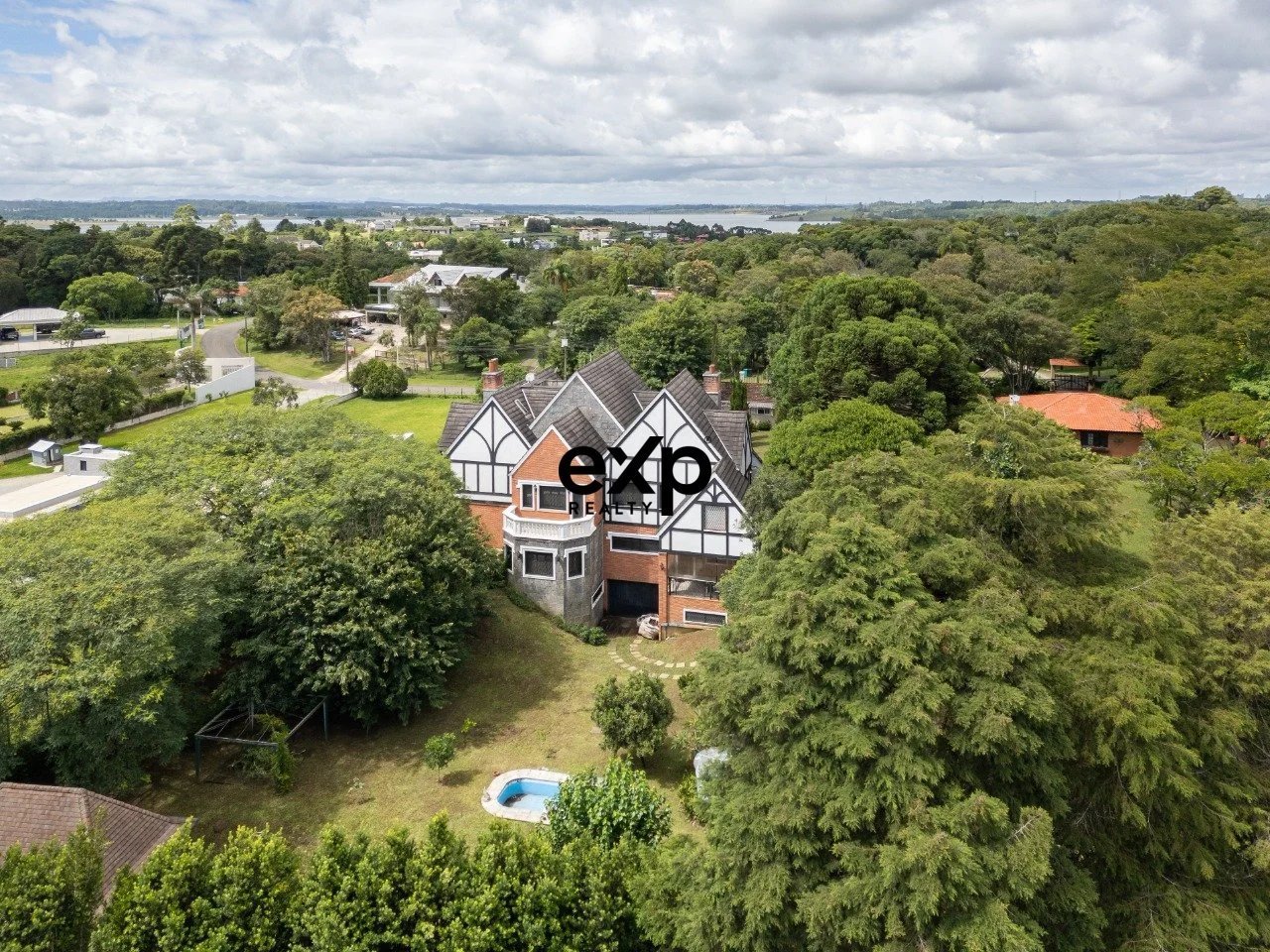 Hochwertige Wohnanlage im Tudor-Revival-Stil, gelegen in Quatro Barras in der Metropolregion Curitiba. Das 2012 erbaute Haus verbindet klassische europäische Architektur mit zeitgenössischer Ingenieurskunst und bietet bauliche Solidität, thermischen