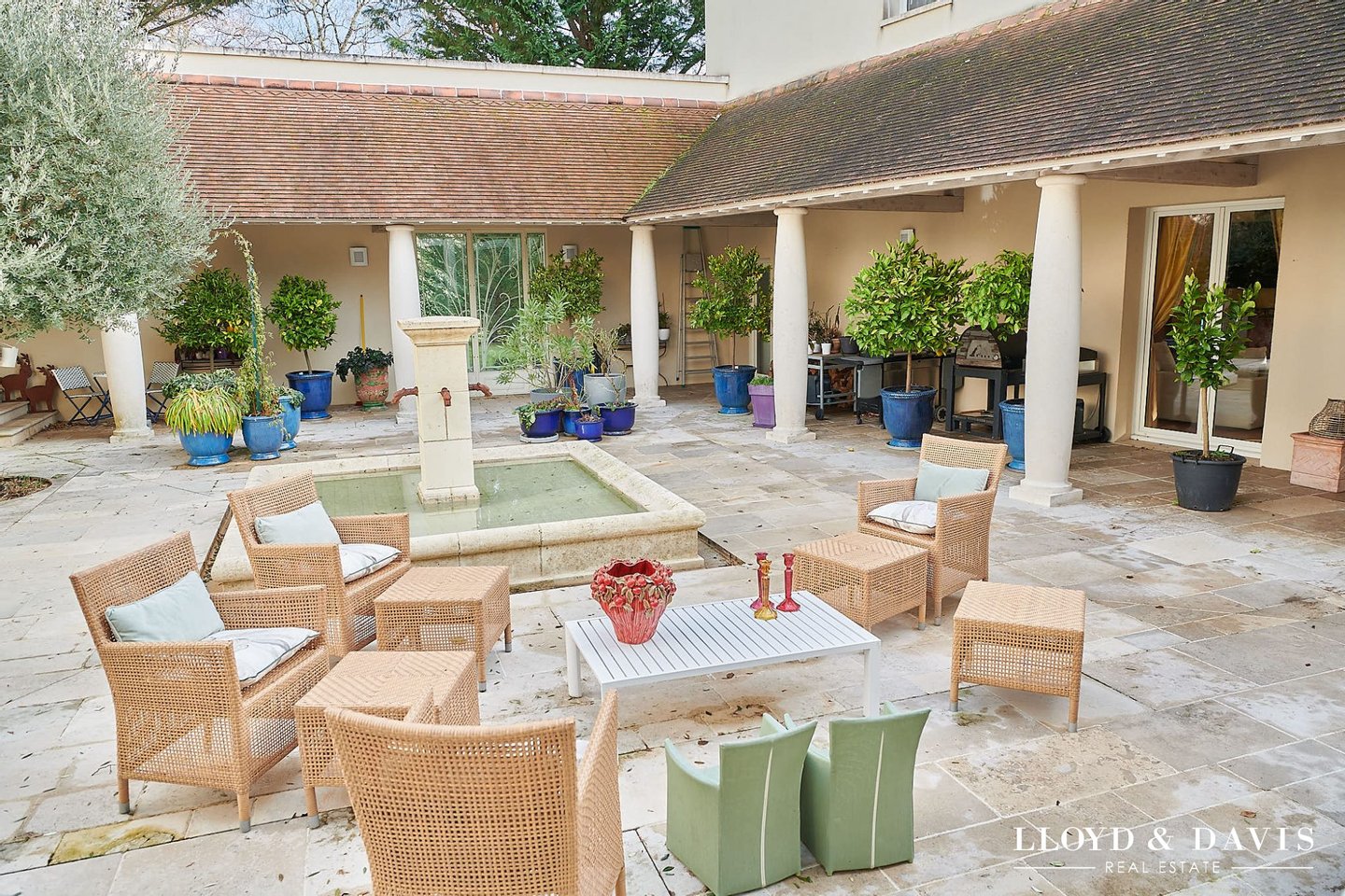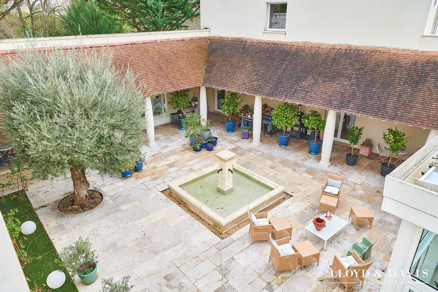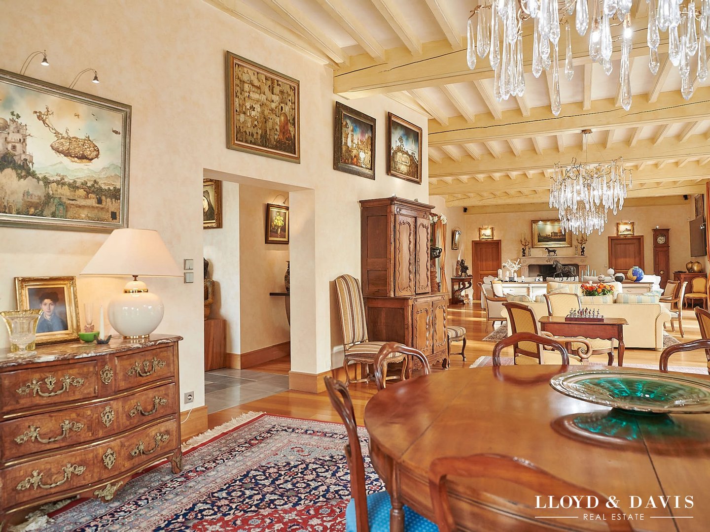 In the immediate vicinity of the city center of Tours, this exceptional property nestled in the heart of a residential area of Saint-Cyr-sur-Loire reveals itself out of sight, in a quiet and green environment. Built on an enclosed and wooded landscaped park of 6,887 m², the villa with a living area of 581 m² offers a rare living environment, combining prestige, volumes and privacy. Its contemporary, elegant and perfectly mastered architecture is harmoniously articulated around a patio of approximately 180 m², the real heart of the place, subtly separating the day and night areas. From the entrance, an impressive hall leads to: a remarkable reception room of nearly 150 m², bathed in natural light, offering generous volumes and beautiful openings onto the park and the patio. A high-end kitchen, equipped with premium furniture and accessories, extended by a convivial dining area overlooks a winter garden and the patio. The sleeping area on the ground floor offers: a bright master suite with a direct opening onto the park, two additional bedrooms share a central bathroom and a separate toilet. Upstairs: A beautiful suite with dressing room gives access to a large terrace and gym, a large office that can be used as an additional bedroom, two other terraces of good size, offer multiple possibilities of layout. The basement completes the set with two garages, a secure and air-conditioned wine cellar, a technical room and several storage spaces. The services are top-of-the-range: underfloor heating, central vacuuming, integrated sound system, partial air conditioning, security system with alarm and cameras, automatic watering of the park by borehole. As the foundations are built in cast concrete, the villa benefits from excellent structural robustness and high-performance thermal insulation. This unique property embodies an exceptional art of living for people looking for a natural and refined living environment harmoniously combining elegance, comfort and discretion. Quick access in one hour by TGV from Paris Montparnasse. Agency fees included of 5% TTC to be paid by the buyer. Price excluding fees 2 500 000 €. Energy class B, Climate class B Estimated annual energy expenditure for standard use: between €4487.00 and €6071.00 over the years 2021, 2022 and 2023 (subscriptions included). Information on the risks to which this property is exposed is available on the Géorisques website: georisques.gouv.fr. Your LLOYD & DAVIS advisor: Olivier CORADAZZO Commercial Agent (Sole Proprietorship) RSAC 413 006 636 Tours RCP MA035A20ANPM/O2 Beazley