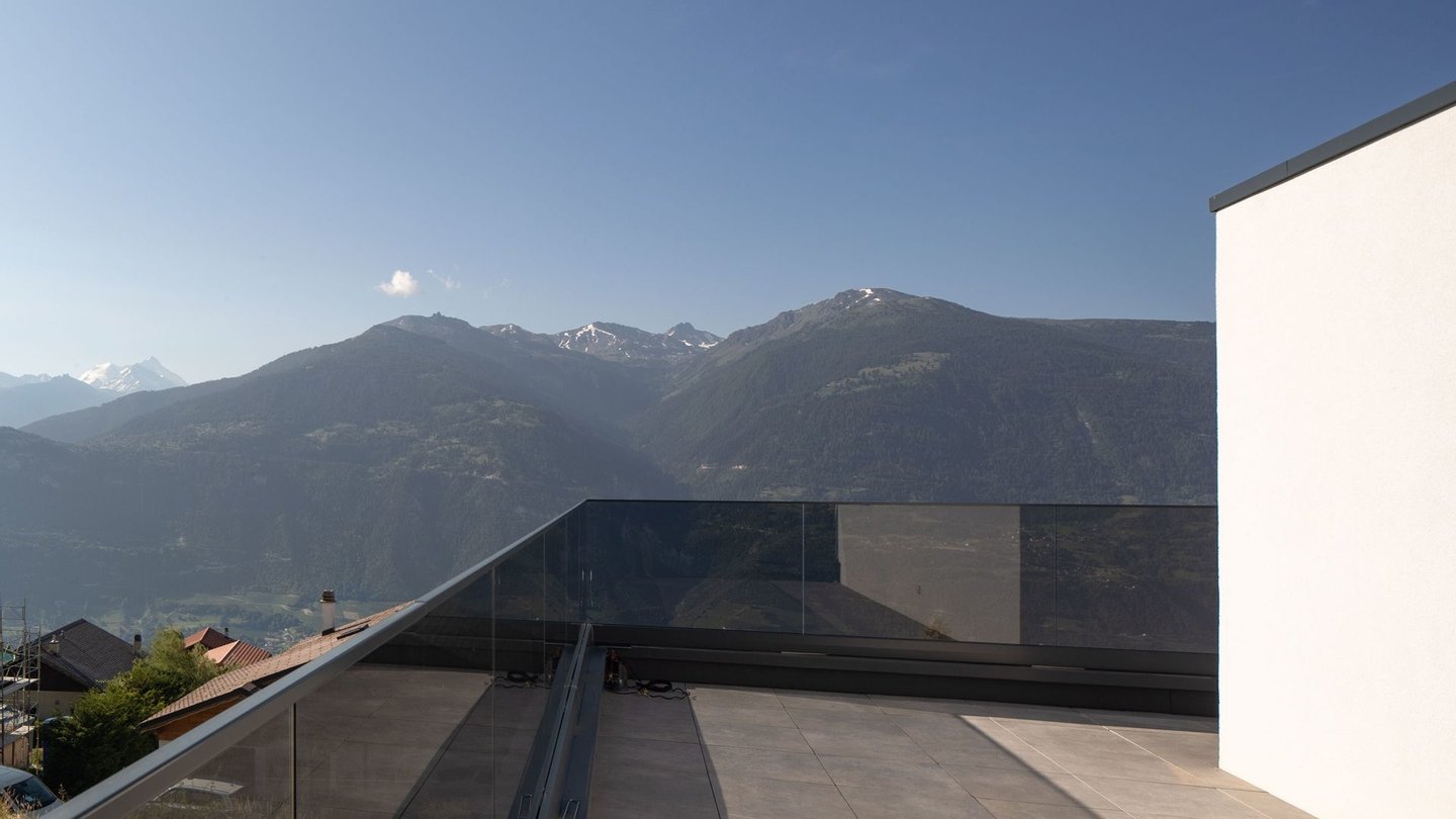 The newly built property in a peaceful area benefits from an ideal orientation and an unobstructed view of the Alps. Modern and refined, the house favours common areas and optimises the distribution of rooms to meet the needs of a main residence. Five minutes from Crans-Montana and less than twenty minutes from Sierre, it offers a rare quality of life for those who wish to combine proximity to amenities, comfort and tranquillity.