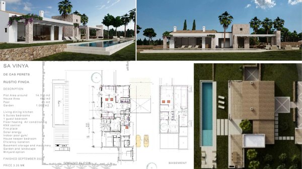 Wir präsentieren Ihnen unsere spektakuläre Villa „Sa Vinya“, ein bezauberndes Weingut, das eine perfekte Kombination aus ländlicher Ruhe und mediterraner Schönheit mit rustikalem Charme und authentischem mallorquinischem Charakter bietet. ~~Das Grundstück umfasst 14.799 m2 und ist wie folgt aufgeteilt: ~~Hauptgeschoss: ~~Eingangshalle ~Wohnzimmer ~Esszimmer~Ausgestattete Küche~Hauptschlafzimmer + Badezimmer en suite ~Gästezimmer ~Gäste-WC ~Ankleidezimmer ~Speisekammer~Innenhof/Waschküche ~Veranda~Kamin~~~Erdgeschoss: ~~Suite-Zimmer ~WC ~Weinkeller ~Maschinenraum~Kinoraum ~Fitnessraum ~~Ausstattung: ~~Klimaanlage mit Fußbodenheizung und Wasserzirkulation~Audio: Sonos-System mit B & W-Lautsprechern in allen Wohnbereichen, Schlafzimmern und Terrassen~Fenster: Iroko-Holz/Eisen mit Doppelverglasung ~Sonnenkollektoren~Marmorböden, Naturstein, exklusive Holzböden in den Schlafzimmern~Salzwasserpool mit Natursteinverkleidung~Hauptbadezimmer; XL-Wellnessdusche, Badewanne, separates WC mit Dusche und Naturstein. ~Sicherheit: Alarmanlage, Videoüberwachung im Außenbereich, Safes~Garten: einheimische Vegetation der Insel Mallorca, mediterraner Stil. ~Pool mit automatischer Abdeckung, beheizt mit Luft-Wasser-Wärmepumpe~Tiefgarage~Fitnessraum: Sauna, Türkisches Bad, Whirlpool, Technogym-Geräte, TV.~Anschluss für Elektroautos ~Klimatisierter Weinkeller~Weinberg. ~~Baujahr 2025. ~~~~~~