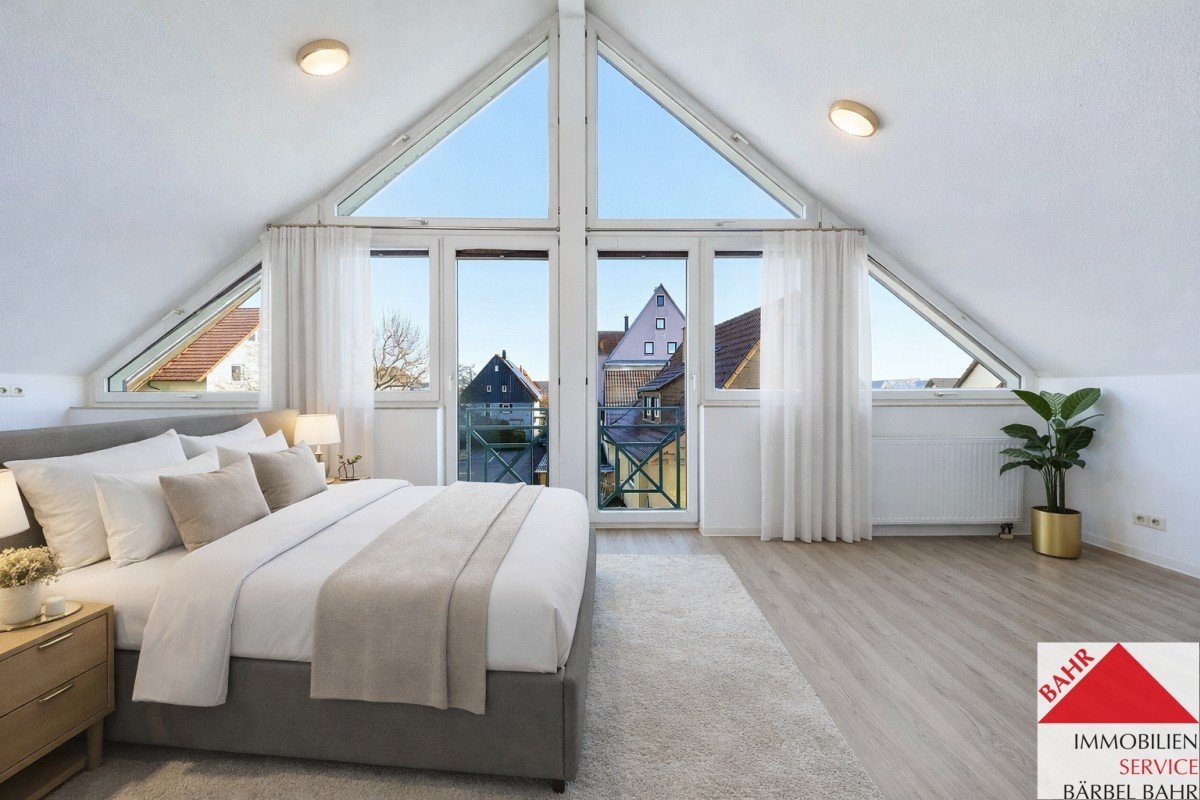 Im Dachgeschoss erwartet Sie neben einem weiteren Schlafzimmer ein großzügiges Studio, das zahlreiche Nutzungsmöglichkeiten bietet – sei es als Arbeitszimmer, Atelier oder zusätzliches Schlafzimmer. Das Tageslichtbad im Dachgeschoss ist mit einer Dusche ausgestattet.