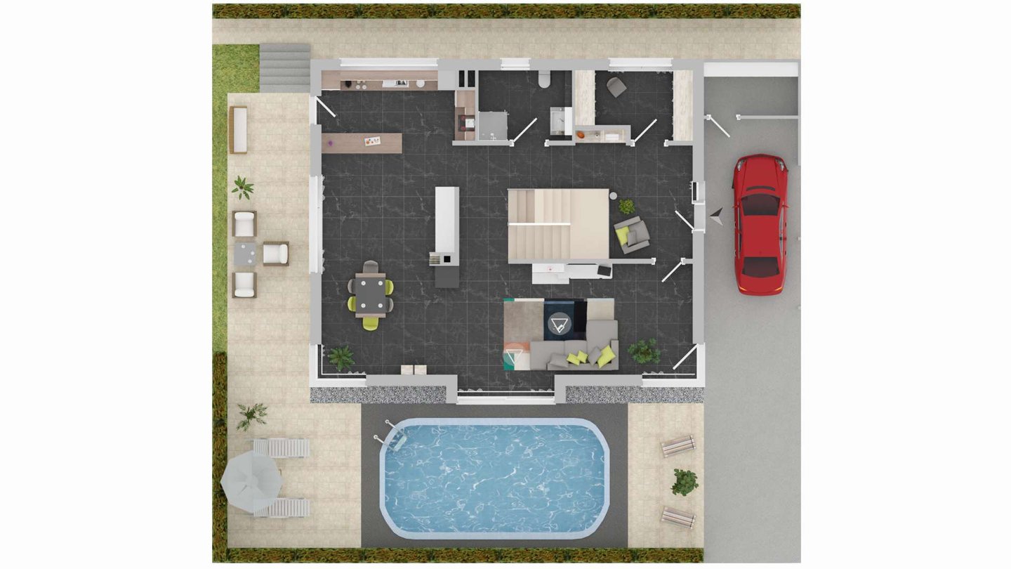Der Außenbereich beeindruckt mit einem liebevoll angelegten Garten, einer großen Terrasse und einem privaten, beheizten Pool (ca. Maße 6m x 3,2m x 1,5m), der nicht nur in den Sommermonaten für pure Entspannung sorgt.