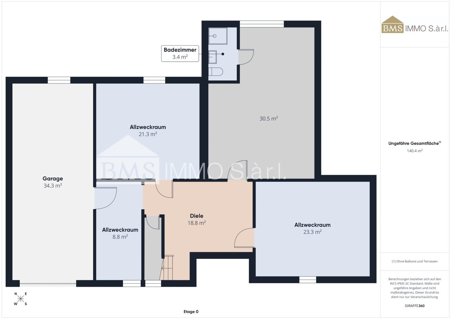 Badezimmer (Dusche/Toilette) 3.4 m²