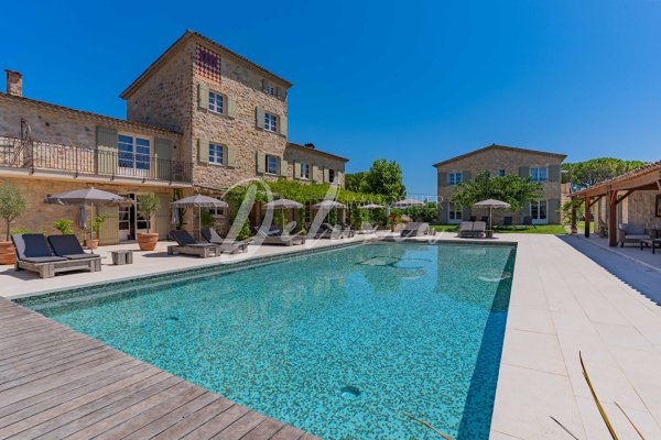 Comprising several stone buildings, the property offers a total of 690 sqm of living space. The main house, arranged over four levels, boasts a refined yet welcoming atmosphere with an entrance hall, a large dining room with fireplace and open fully equipped kitchen, a living room, and a first en-suite bedroom on the ground floor. Upstairs, there are five further suites, including an outstanding master bedroom of over 50 sqm.