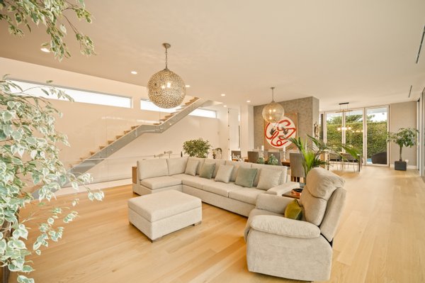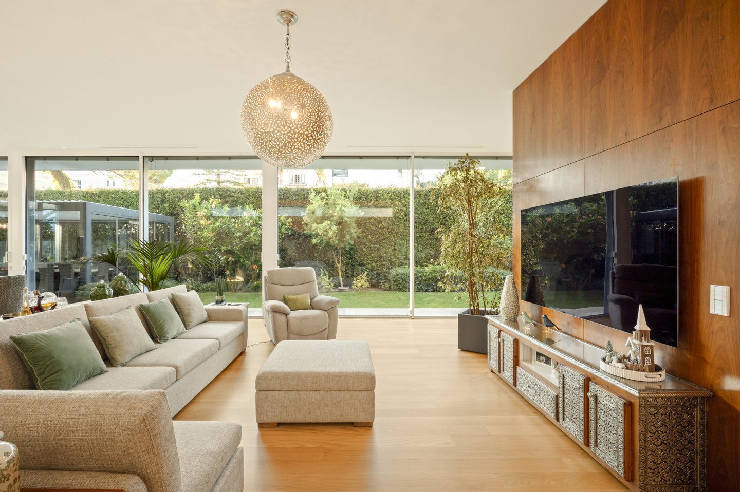 A bright and spacious living room of 65.80 m², with direct access to the garden, perfect for entertaining guests.