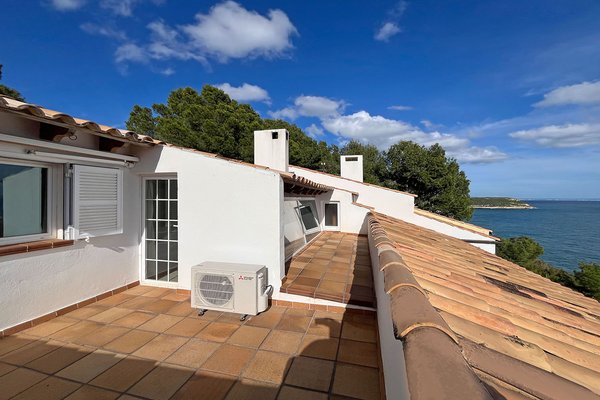 Das Duplex-Penthaus liegt in absolut privater und ruhiger Position direkt auf der Felsküste von Cala Vinyas, einer begehrten Urbanisation im Südwesten der Insel. Die unmittelbare Umgebung grenzt an ein Naturschutzgebiet und bietet ein hohes Maß an Ruhe und Naturverbundenheit. In der näheren Umgebung befinden sich mehrere idyllische Badebuchten, ein kleiner Yachthafen sowie zwei Ferienorte mit sehr guter Infrastruktur.