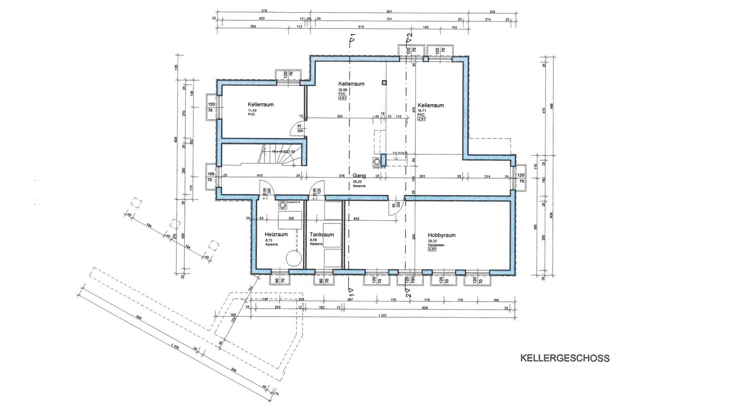 Im Untergeschoss stehen mehrere sehr große Räume zur vielseitigen Nutzung zur Verfügung.