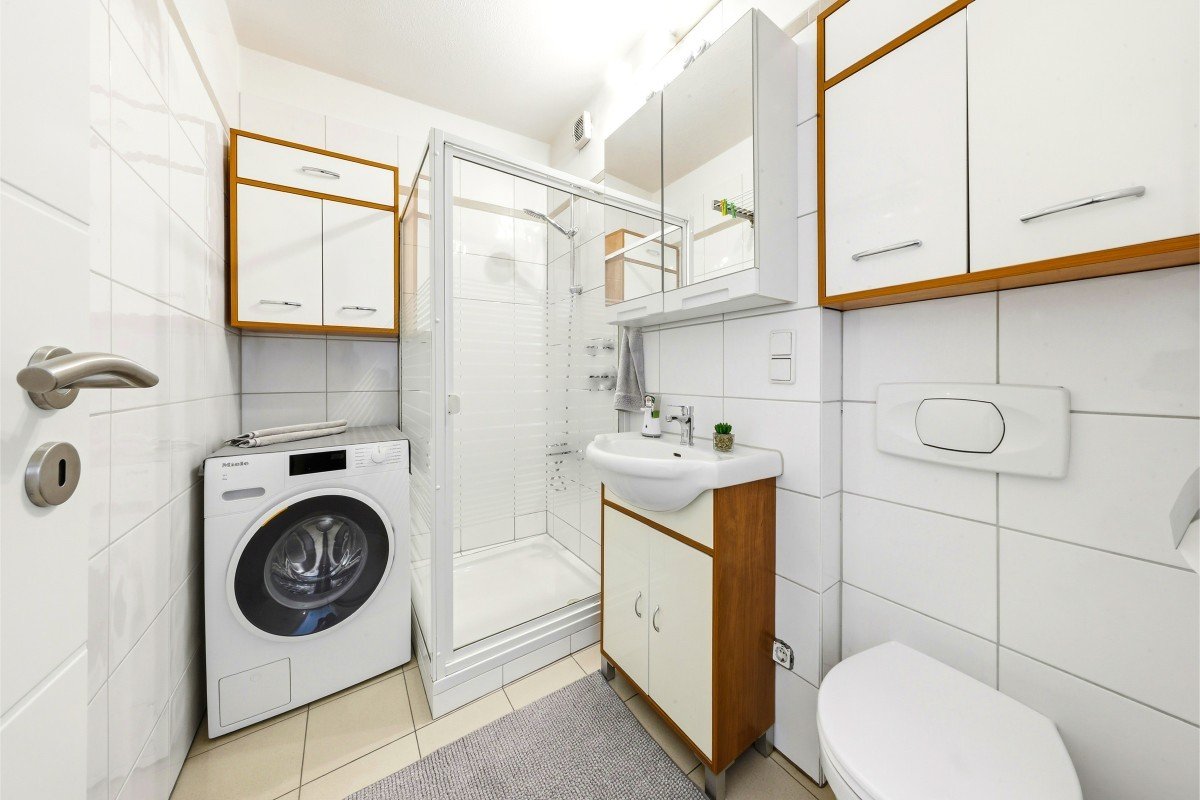 - Modernes Bad mit Dusche und Waschmaschinenanschluss