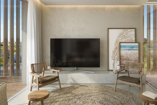 Townhouse with rooftop terrace on the seafront, set within the exclusive Verdelago resort, located in Altura, Castro Marim, fully furnished, equipped, and decorated, in one of the most privileged areas of the development between the Clubhouse and direct beach access. With 150 sqm of private gross area, this 3-bedroom property, including 2 suites, stands out for its contemporary design, comfort, and high-quality construction, designed for a peaceful lifestyle in harmony with nature.~~The property features 3 bathrooms, private parking for one vehicle, as well as a terrace and balcony, offering pleasant outdoor spaces to enjoy the Algarve climate. Just 100 metres from the beach, the townhouse benefits from direct access to the sand, providing a unique and immediate connection to the coastline.~~Verdelago is a landmark resort spanning 37 hectares, characterised by a low construction density, extensive green areas, natural lakes, and a strong commitment to environmental preservation. The seafront extends for approximately 1 km and includes a beach support area with bar, restaurant, and beach terrace, covering around 400 sqm, set within a concession area of approximately 36,000 sqm.~~Residents enjoy a true village club concept, including reception services, swimming pool, landscaped gardens, bars, and restaurants with open kitchens and terraces. The Verdelago Clubhouse offers light lunches, and dinners, with the added convenience of ordering food directly to the beach concession loungers, ensuring a relaxed and seamless seaside experience. The open market provides essential, gourmet, and local products, with ordering via an internal app and delivery directly to the townhouse.~~Sports and leisure facilities are extensive and diverse, including padel and tennis courts, a 7-a-side football pitch, a beach volleyball court, a Kids Club with babysitting service, as well as an extensive network of safe walking and cycling paths within the resort and beyond its boundaries, always closely connected to nature. Discover the resort’s Green Park through these routes and embrace the natural rhythm of the surroundings.~~Located just behind the townhouse, the spa and gym are scheduled to open in June this year, further enhancing the resort’s focus on wellbeing and quality of life. The property itself also features a rooftop terrace with a leisure area, offering a private and exclusive space to relax.~~The resort also benefits from 24-hour security and surveillance, concierge services, and CCTV. In terms of accessibility, it is just 2 minutes from the Via do Infante, with supermarkets and essential services approximately 5 minutes away, and Faro Airport around 45 minutes away.~~An ideal property for those seeking exclusivity, close contact with nature, comfort, and a true resort lifestyle in one of the Algarve’s most iconic developments.