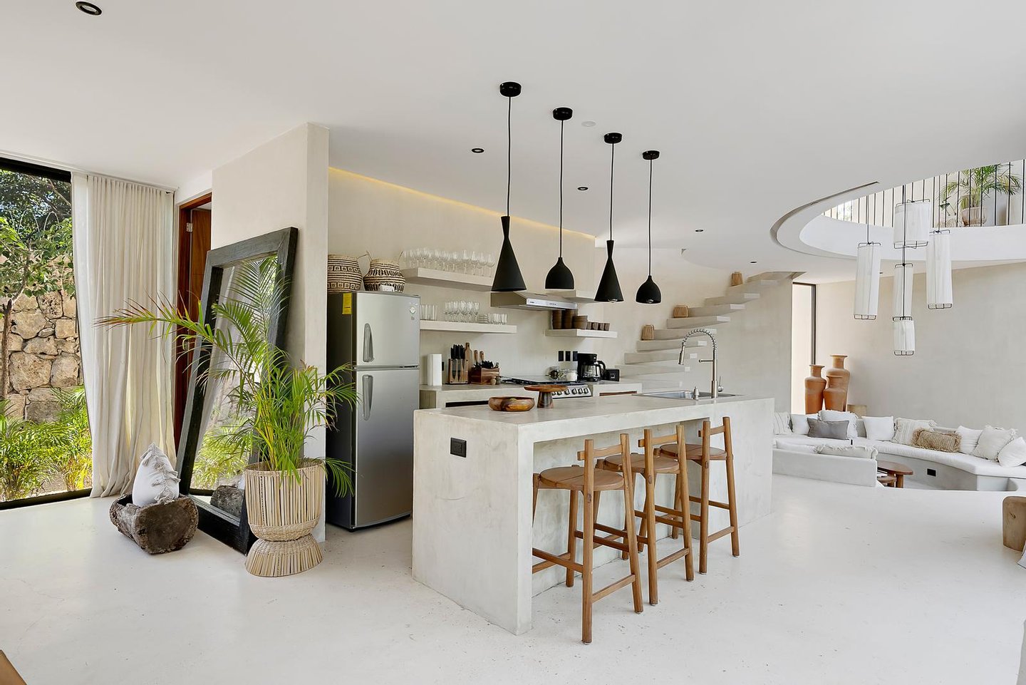 With 436 m² of construction distributed over three levels, on a plot of 816 m², this villa combines eco-friendly materials such as chukum, polished concrete and regional woods, creating a design that ages gracefully alongside the property and its future owners.
