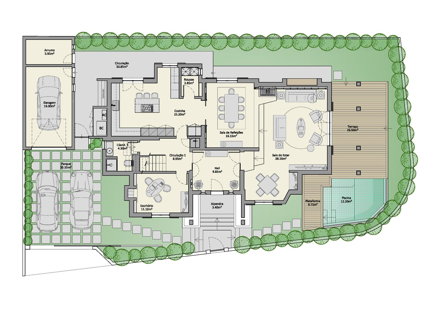 Auf einem 428 m² großen Grundstück mit einer Gesamtfläche von 300 m² wurde es sorgfältig für einen modernen, familienorientierten und anspruchsvollen Lebensstil gestaltet.
