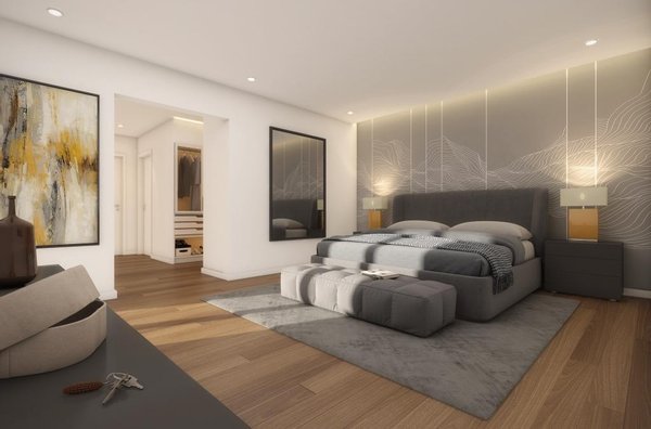 Master-Suite mit begehbarem Kleiderschrank und privatem Balkon