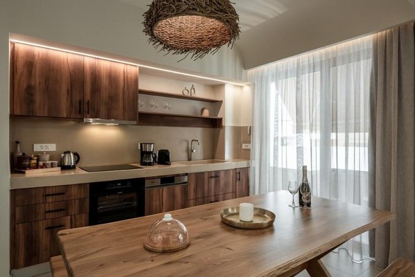 Offener Wohnbereich mit voll ausgestatteter Küche