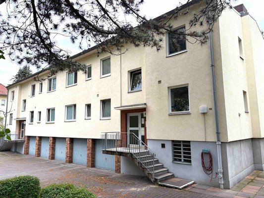 Es handelt sich um ein Mehrfamilienhaus aus dem Jahre 1965 mit Flachdach. Hofseitig befinden sich Garagen. Den Nutzern stehen freie Garagen zur Anmietung zur Verfügung.