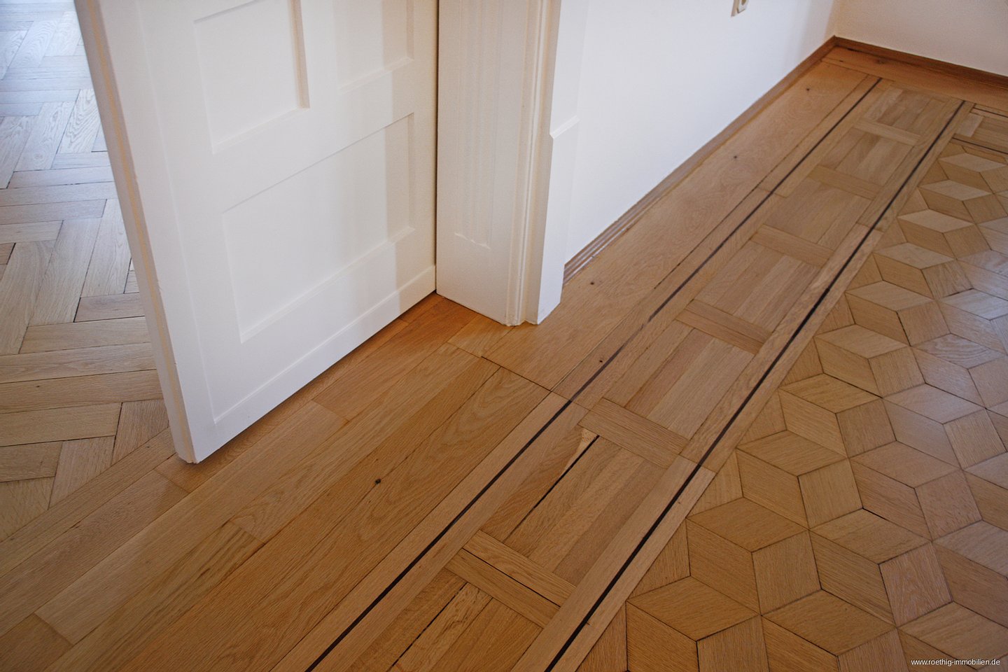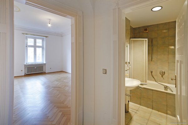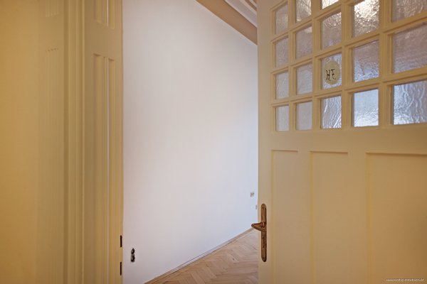 Vom feudalen Treppenhaus betreten Sie die Wohnung und werden von einem überaus weitläufigen Flur, mit stolzen 36 m², empfangen. In diesem Bereich finden Sie viel Platz für eine Garderobe, ein Sideboard und weiteres Interior. Der historische und hochwertige Parkettboden, welcher in allen Wohnräumen verlegt ist, versprüht bereits im Eingangsbereich seinen Charme.