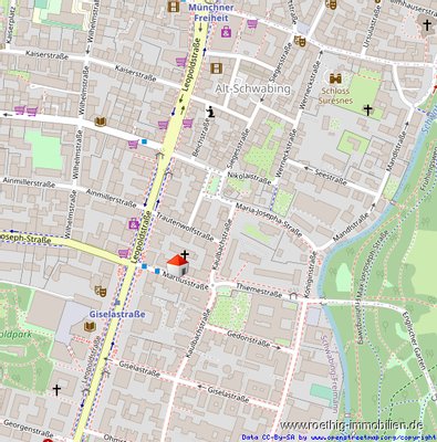 Schwabing galt früher als Stadtteil der Künstlerszene. Heute zählt der Bezirk zu den beliebtesten Wohn- und Ausgehvierteln Münchens. Die unmittelbare Nähe zum Englischen Garten und die hervorragende Infrastruktur machen Schwabing zu einem Ort höchster Lebensqualität. Die einzigartige Lage der Immobilie bietet auf der einen Seite einen unschätzbaren Wohnwert durch eine ruhige Umgebung und auf der anderen Seite eine ideale Verkehrsanbindung und Infrastruktur.