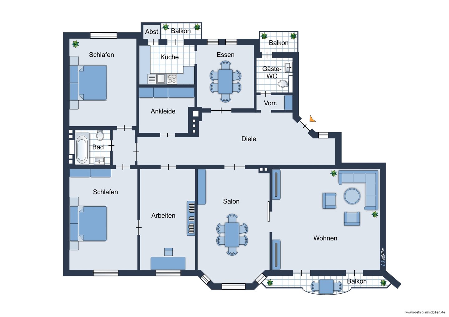 + drei Balkone mit verschiedenen Ausrichtungen