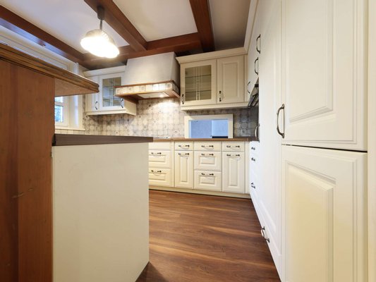 - Hochwertige Einbauküche (2021) mit NEFF-Einbaugeräten, Induktionskochfeld mit integriertem Grill, Unterbau-Waschmaschine (Bosch) und Durchreiche zum Essbereich