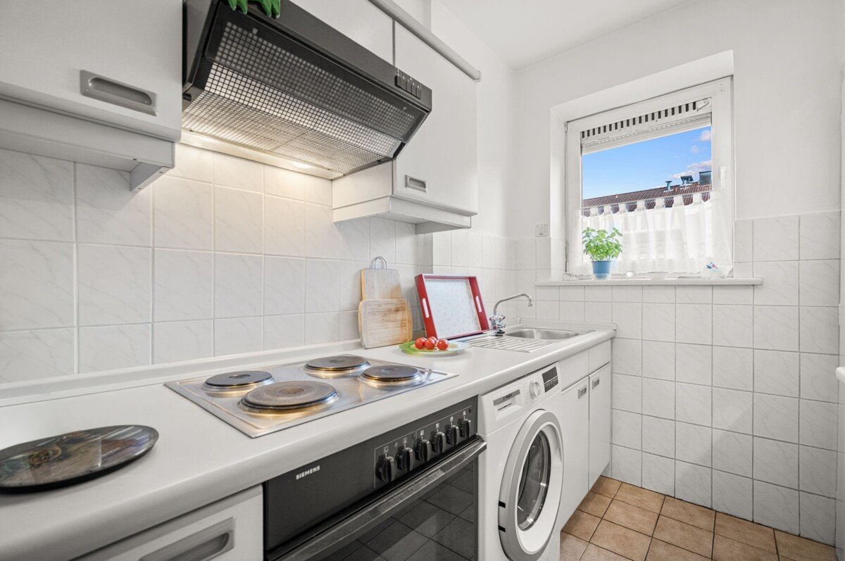 Die Wohnung selbst ist effizient geschnitten und bietet helle, freundliche Räume. Neben einem großzügigen Wohnzimmer und einem gut dimensionierten Schlafzimmer verfügt sie über ein halbes Zimmer, das sich ideal als Kinderzimmer oder Büro eignet, eine separate Küche mit Fenster sowie ein gepflegtes Badezimmer mit Dusche bzw. Badewanne. Ein praktischer Flur mit Abstellmöglichkeiten und ein zugehöriger Kellerraum runden das Angebot ab.