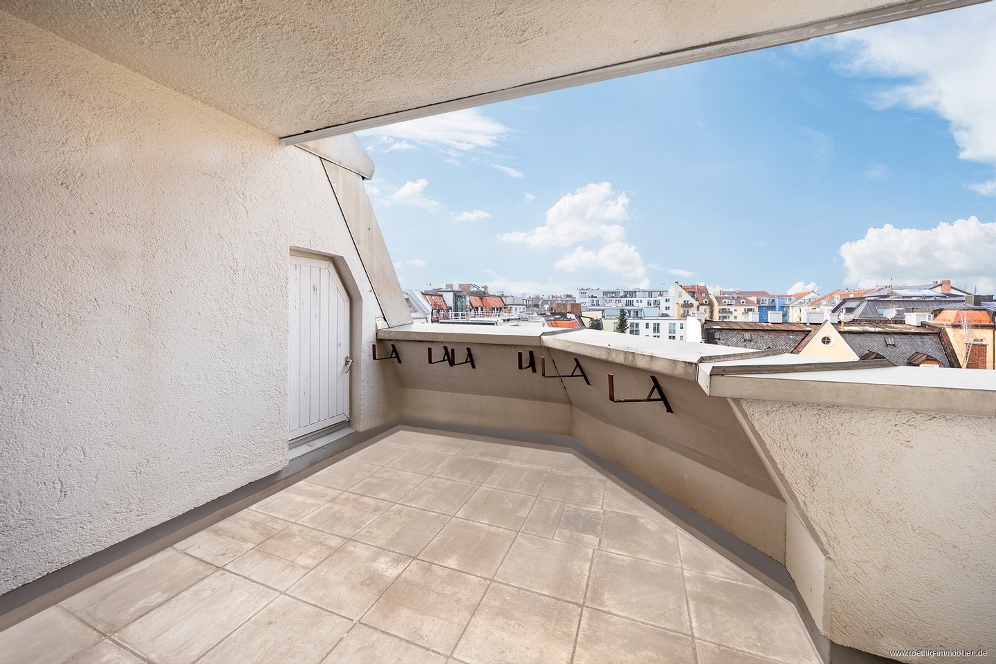 Die überdachte, nach Westen ausgerichtete Dachterrasse verfügt über ca. 15 m² und ermöglicht vielfältige Gestaltungsmöglichkeiten – von Pflanzenarrangements bis hin zu gemütlichen Sitzbereichen. Ergänzt durch einen praktischen Stauraumbereich, eine zusätzliche Markise sowie Licht- und Stromanschluss entsteht ein vielseitig nutzbarer Außenbereich. Perfekt, um in privater Atmosphäre traumhafte Sonnenuntergänge über den Dächern der Stadt zu genießen.