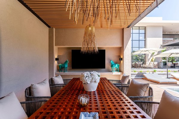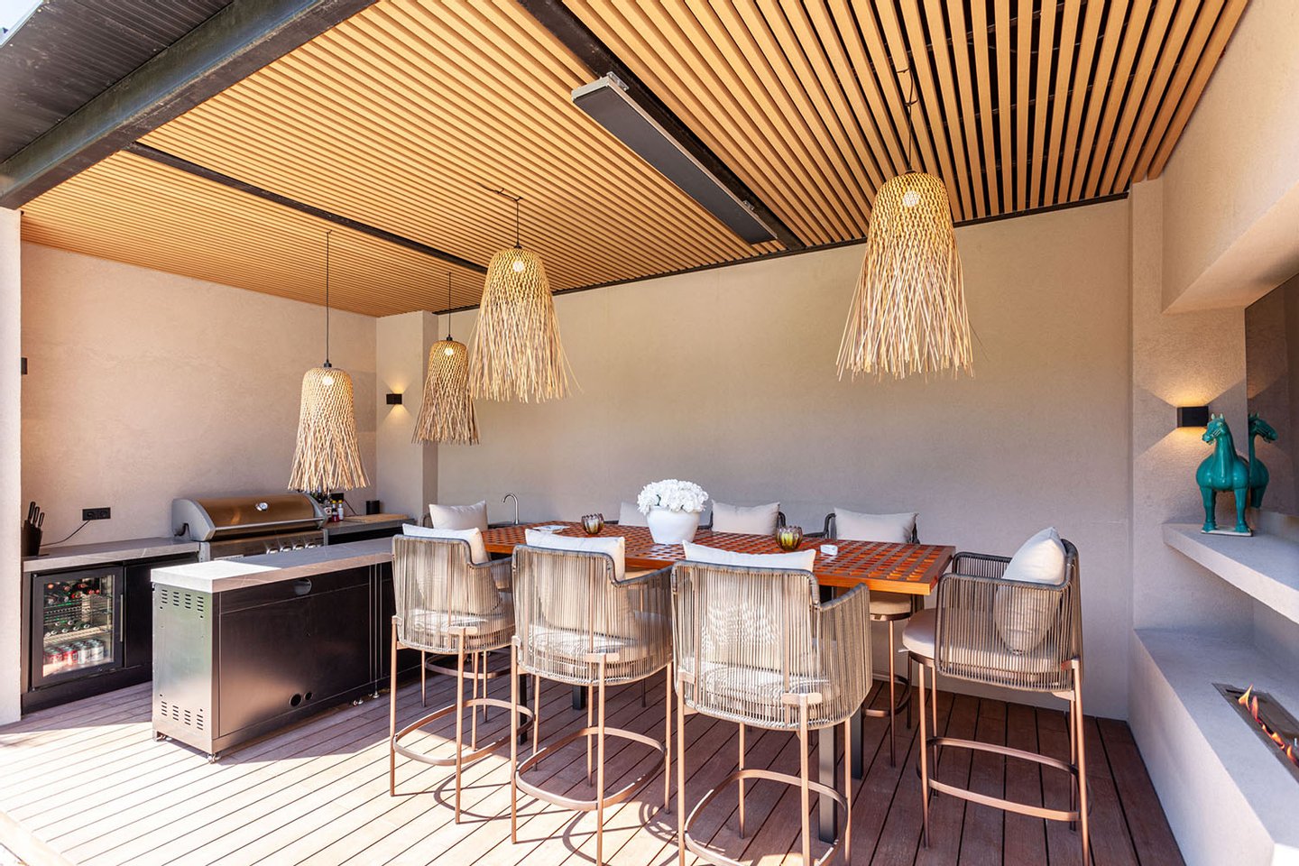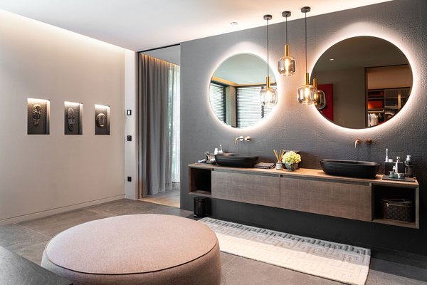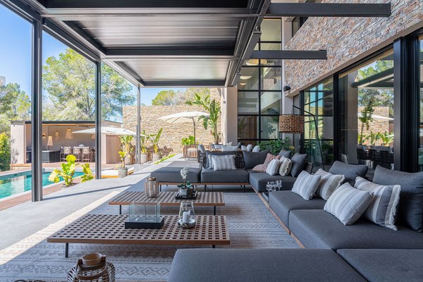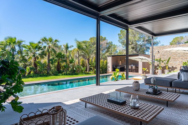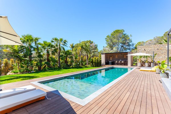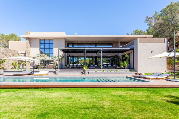 Diese prächtige Villa im minimalistischen Bauhausstil mit großflächiger Verglasung und Natursteinverkleidung begeistert nicht nur mit ihrer außergewöhnlichen Architektur, sondern auch mit einer exquisiten Innenausstattung. Sie wird in Bauqualität, Design, Finish und Funktionalität höchsten Ansprüchen gerecht und bietet ein einzigartiges Wohnerlebnis. Auch die Lage ist bestens gewählt. In der grünen, natürlichen Umgebung von Cala Vinyas mit schönen Badebuchten und nur ca. 25 Kilometer vom Flughafen entfernt, genießt man absolute Ruhe und hat gleichzeitig eine sehr gute Verkehrsanbindung. Die Villa ist umgeben von einem herrlichen, mit tropischen Pflanzen angelegten Garten mit Sommerküche und absoluter Privatsphäre. Im Erdgeschoss teilt sich die Wohnfläche auf in das Wohn-/Esszimmer mit einer offenen Luxusküche, zwei Schlafzimmer mit Bädern en suite, einen Wirtschaftsraum und eine Gästetoilette. Auf dieser Ebene befinden sich zudem eine Doppelgarage, Technikräume und der Zugang zur südorientierten Terrasse mit Lounge und zum Poolbereich. Die obere Etage umfasst das Masterschlafzimmer mit Bad und Ankleide und zwei Schlafzimmer mit Bädern en suite sowie eine große Sonnenterrasse. Im Untergeschoss gibt es einen Fitnessbereich mit Bad.