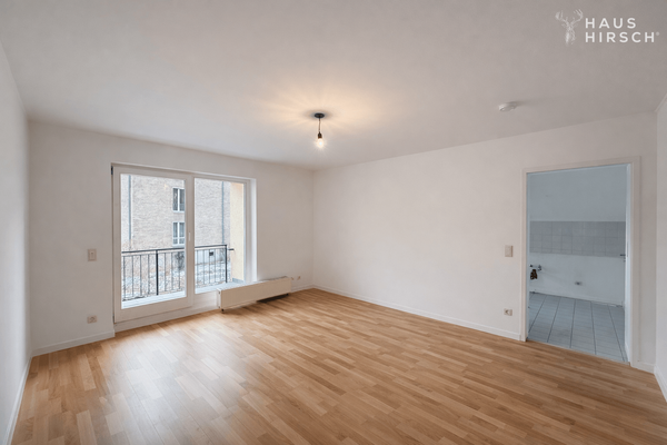 Die Wohnung verfügt über ein ruhiges Schlafzimmer sowie ein großzügiges Wohnzimmer, an das die separate Küche unmittelbar angrenzt. Die bestehende Raumaufteilung bietet vielfältige Nutzungsmöglichkeiten. Vom Wohnbereich aus ist der überdachte Balkon zugänglich, der zusätzlichen Freiraum bietet.