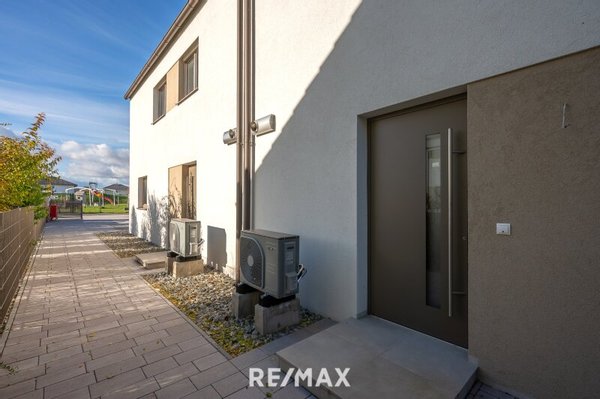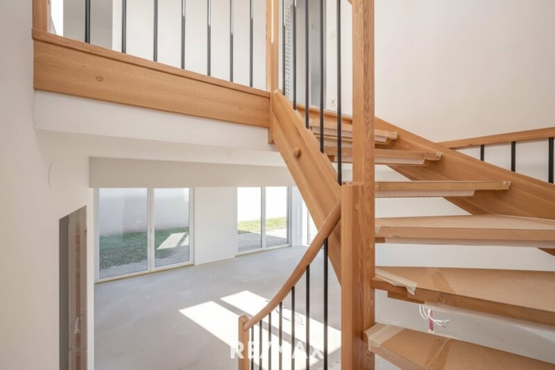 Eine moderne Heiztechnik (Luft-Wasser-Wärmepumpe) gehört ebenso zur Ausstattung wie die Vorbereitung für weitere moderne Annehmlichkeiten. Aktuell wird das Haus in der Variante Belagsfertig Plus (Stiege in Eiche-Vollholz, Schalter- und Steckerprogramm etc.) verkauft.