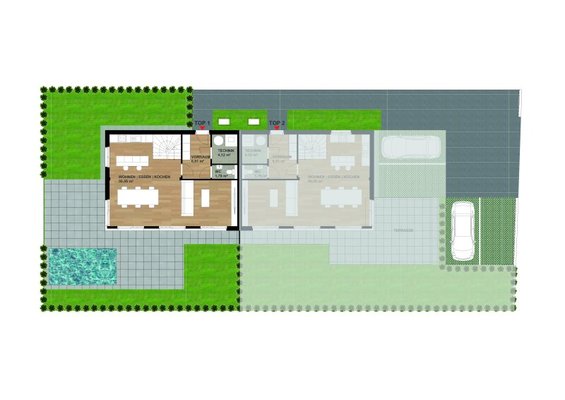 Zwei Autoabstellflächen inkl. Vorbereitung für eine E-Ladestation sind zum Preis von jeweils EUR 10.000,– zu erwerben.