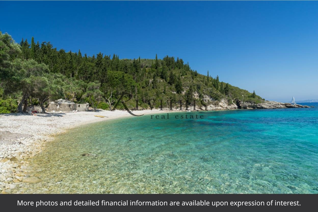 In Paxos, in einer der schönsten Ecken des Ionischen Meeres, steht eine seltene Strandimmobilie zum Verkauf – ein großes Anwesen am Meer mit zwei unabhängigen Häusern/Flügeln mit einer Gesamtfläche von etwa 1.711 m², auf einem Meeresgrundstück von
