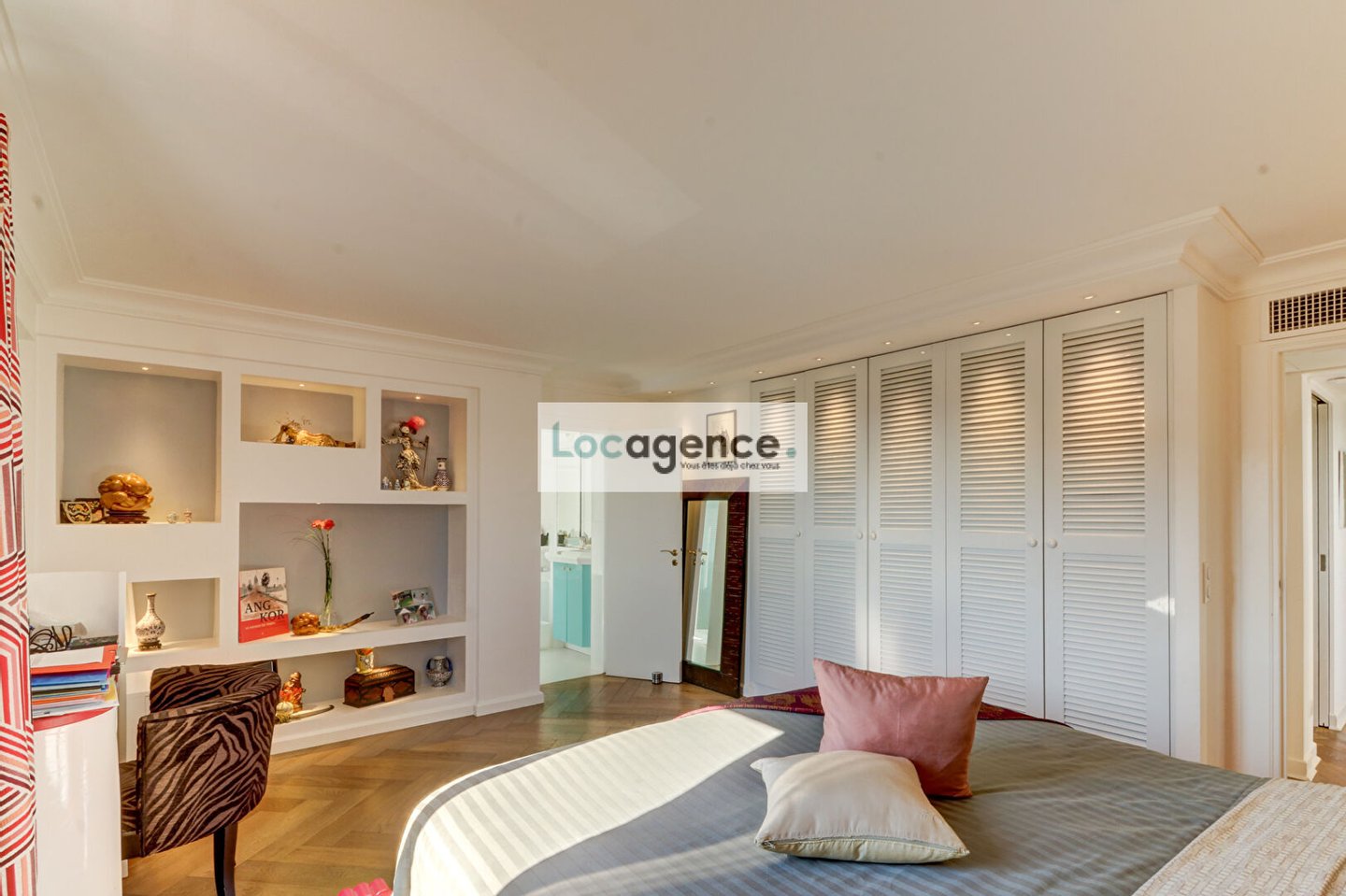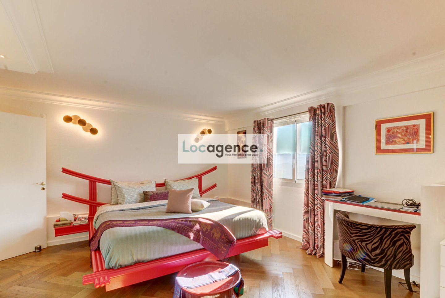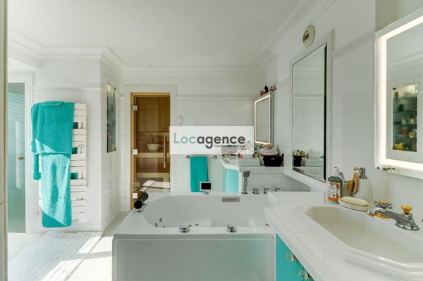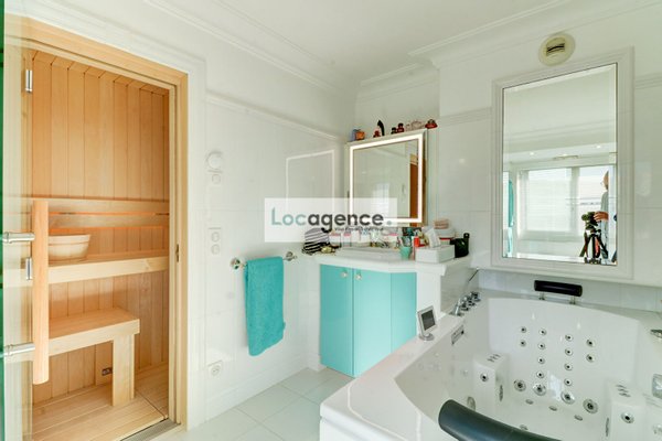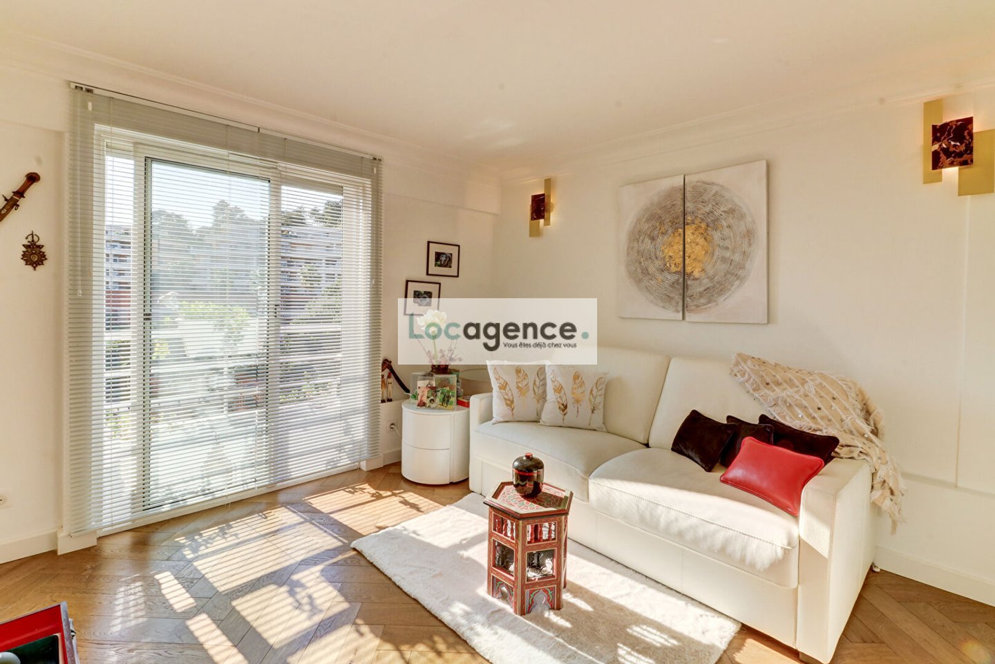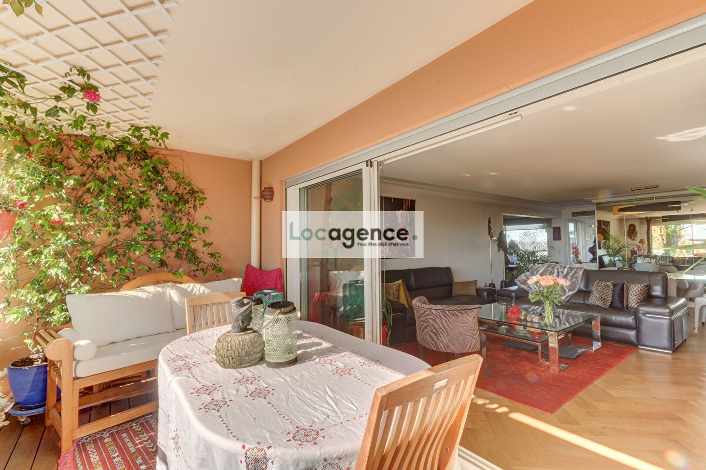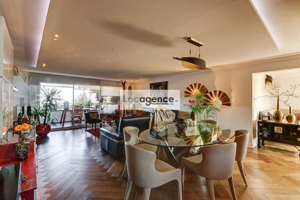 We are proud to present this unique property! Crossing apartment with two terraces with wooden floors, superb view of the Bay of Cannes and the Lérins Islands for both on the Esterel, privilege of the sun turning from sunrise to sunset, magic of colors!! Completely rearranged, wooden parquet flooring over the entire surface of the rooms, high quality herringbones, designed as a loft, with its tasteful decoration and its zen atmosphere that favors the distribution of the living rooms, you immediately feel in a special place: a welcoming entrance opening onto a large bright living room crossing E/W, A fully equipped kitchen around which all the rooms are articulated: a spacious master suite with dressing room and spa (jacuzzi whirlpool baths, light therapy, sauna of pleasant design and lighting), a second bedroom with a large quality and fitted dressing room, a shower room and adjoining / separate toilets, a laundry room. Sold with a large furnished and tiled shed, you can store all types of belongings there because it is healthy and upstairs. Also sold with two closed garages. To see, well atypical peaceful, in absolute calm with a certain charm and a privileged location.