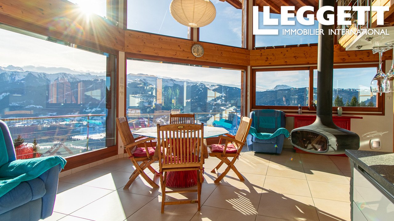A42384JST74 – Vollständig um seine atemberaubende Aussicht herum gestaltet, bietet dieses zeitgenössische Chalet spektakuläre, ungestörte Ausblicke auf Samoëns, die umliegenden Berge und bis hin zum Mt Blanc.